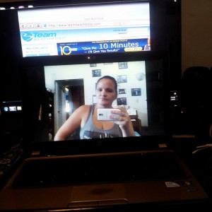I hate going to the gym and I have asthma so running outside is difficult for me, but I love working out in my basement with all of my equiptment and I love doing cardio videos to get in shape. My house is too small for more than one person to workout at a time and my basement is to crowded. Sometimes it's hard to find someone who is doing the same workout as you and if you're working out in the same room to different videos or routines it's hard to stay on track, so I started video calling some of my friends who workout and even if we aren't on the same video or in the same state we motivate each other to push harder. I love technology. You can see my video getting started and me waiting for my workout buddies on my video cam.