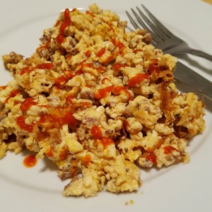 Sometimes sriracha, other hot sauce, or salsa
