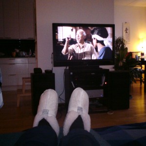 Today my rest-instead-of-overeating became drinking tea waching the movie Karate Kid with some of my cuddely animals in my arms and my fluffy slippers on! Nostalgia and regression to early teenage years! Nice and relaxing must say. :-D