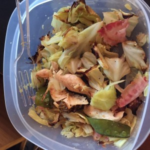 StirFried Chicken n SnowPeas with Oven Roasted Cabbage w/slice of bacon for dinner!!