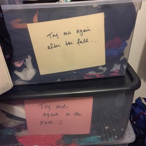 Tonight I went through these two boxes of clothing that I have put away in my closet. Some of it fit (like two things), and most I couldn't get my arm into. I'm in no rush, but I felt a rush of excitement when I saw some awesome pieces that I have put away from a few years ago. The sizes range from 10-14, Smalls-Larges. I look a few things out and hung them up on my closet door as motivation ;)