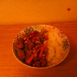 I can have some kind of stir fry almost every week because I believe it to be quite flexible kind of dish. It can be sweet and sour as well as just savoury. It can be spicy but it does not need to be. You can put in cream and fuit or just be satisfied with veggies and tomato sauce. You can eat it with some rice, bulgur.... or maybe few french fries?