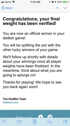 DietBet Winnings: $235.98