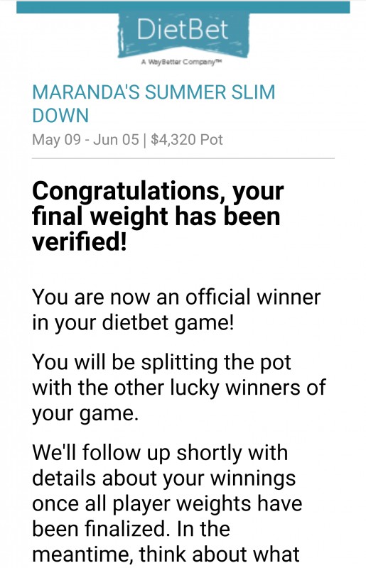 DietBet Winnings: $1,613.10