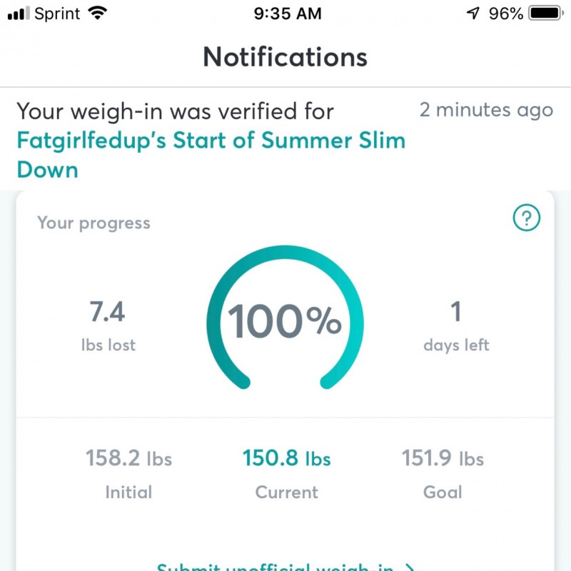 I did indulge a little on my boyfriends birthday on the 20th and was worried about my final weigh in because of it.
