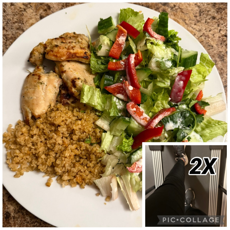 Did a lottttt today already, and finally remembered to eat at 5pm. Made a fabulous 20 minute dinner of an air fryer salmon filet on a bed of brown rice, black beans, hummus, fat free feta, and parsley. Yum! Trying to follow my version of the Mediterranean diet and thrilled with my first meal!
