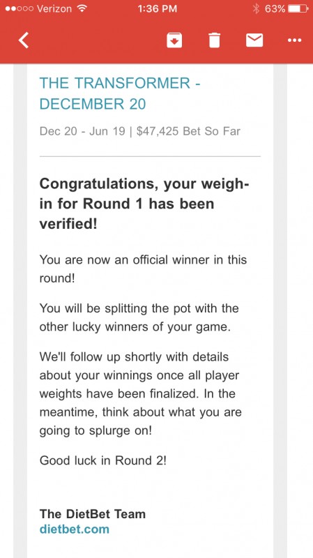 DietBet Winnings: $266.55