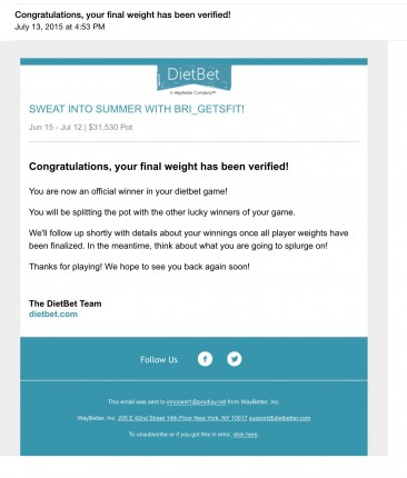 DietBet Winnings: $119.55