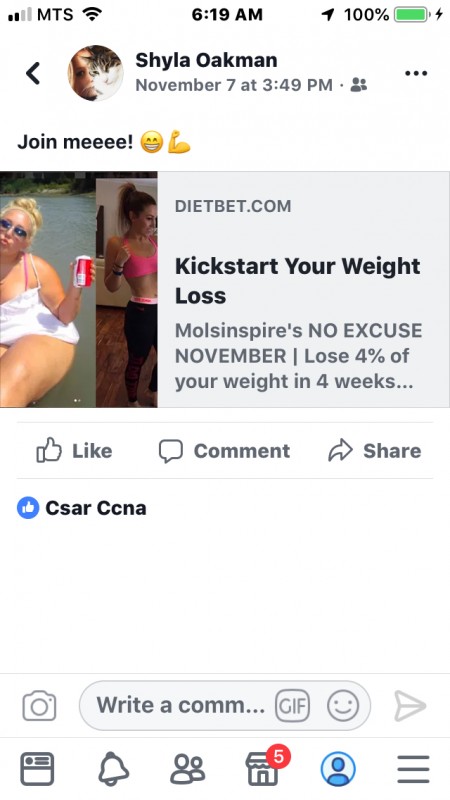 Started diet bet